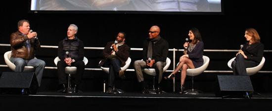 StarTrek.com spent the next several hours back on Stage A, taking in Dominic Keating and Connor Trinneer, then William Shatner, followed by the DS9 grouping of Armin Shimerman, Rene Auberjonois, Jeffrey Combs and Casey Biggs. A short while later, the evening's main event awaited: Shatner moderating a TNG reunion session with Spiner, McFadden, Dorn, Sirtis and Burton.