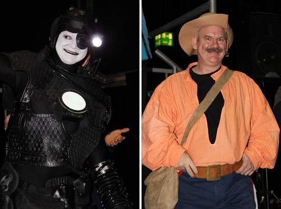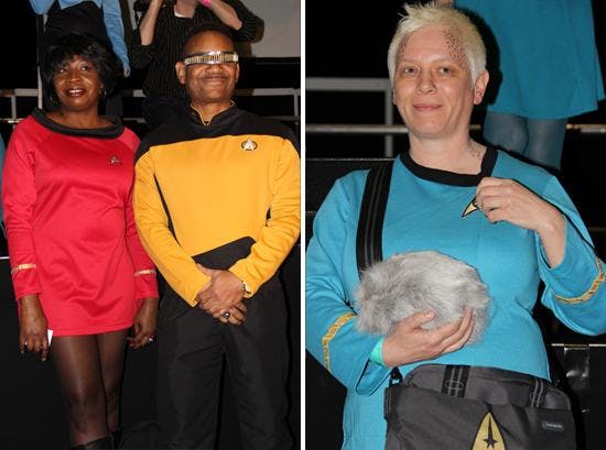 Over on Stage B, Suzie Plakson came out as herself. But it wasn't long before makeup maestro John Paladin, before everyone's eyes, transformed her into a certain fearsome Klingon. The crowd ate it up, as some thunderous music and lighting tricks heightened the moment. Stage B would later welcome Mars One, a Trek trivia challenge, a conversation with Martin Netter, owner of the Trek museum items on display at DSTG, and more, most notably the day's costume contest.
