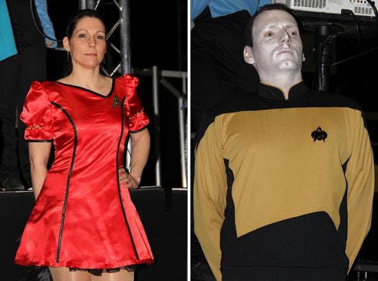 The next couple of hours on Stage B featured interactive programming. The Trek Girls got the audience talking all things Trek, while Mars One discussed what they do (click HERE for details). Then there was debate called Best of The Next Generation, followed by a session with make-up artist John Paladin bantering with Suzie Plakson as he turned her, quite impressively, into a Kilngon.