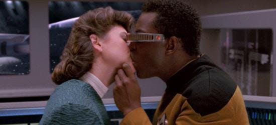 GIBNEY: Oh my gosh, I got to do everything. First of all, she was Geordi’s love interest. I thought, “This is fantastic.” I don’t know if Geordi and Leah was the first interracial relationship since Uhura and Kirk, but that was exciting to me. So it was a doctor role and a romantic role, which gave it a lot of different arcs to play. There’s the stern part of being a professional and the work ethic and the strength and being immune to emotional things, and then having the opposite happen, too. She has this romantic, loving relationship with… well, it gets torn down a little bit, but there was so much to do as an actor. And, let’s face it, I got to be beamed up. I got to design an engine. I got to restructure the dilithium crystal chamber. The only thing I didn’t get to do was shoot a phaser. I got to do so much of the classic Star Trek stuff.