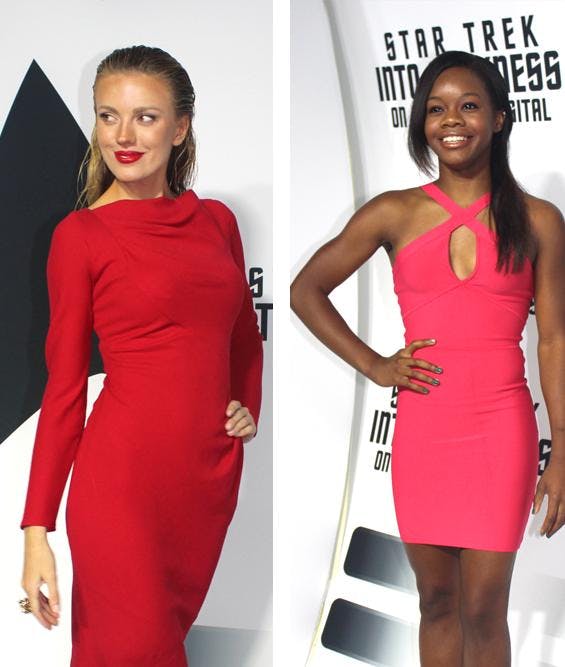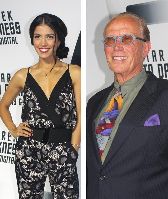 The stars and filmmakers behind Star Trek Into Darkness celebrated the movie's debut on Blu-ray/DVD/Digital in style last night, gathering for a soiree held in the shadow of the space shuttle Endeavour at the California Science Center in Los Angeles. Among those walking the red carpet on their way into the party were J.J. Abrams, Leonard Nimoy, Simon Pegg, John Cho, Nazneen Contractor, Alice Eve, Bruce Greenwood, Deep Roy, Peter Weller and Joseph Gatt, as well as composer Michael Giacchino, special effects supervisor Burt Dalton and creature designer Neville Page. Also on hand: Voyager guest star Ed Begley Jr., Next Generation guest star Paul Sorvino (accompanied by his Oscar-winning daughter, Mira), XPRIZE chairman and CEO Peter Diamandis, Pain & Gain actress Bar Paly, gymnast Gabby Douglas and more.
