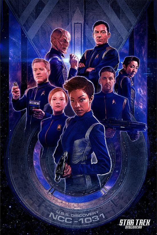 Next, there’s the Star Trek: Discovery Starfleet Giclee Print, also created by Paul Shipper. The giclee print depicts Captains Georgiou and Lorca, Specielist Burnham, First Officer Saru, Lt. Tyler, Lt. Stamets and Cadet Tilly. It measures 24 x 36 inches with border, and is priced at $54.95.