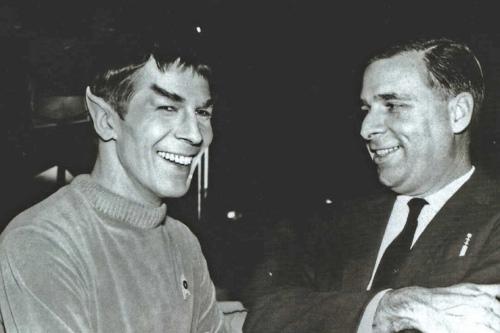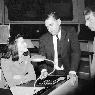 When we met Gene Roddenberry at Tricon, the World Science Fiction Convention in Cleveland, he invited us to visit the Star Trek set any time we were in Los Angeles. We figured it was the usual “Hollywood producer” talk, that he could not possibly mean what he said. We proceeded to shrug it off.Then, when John was sent by his company to Los Angeles for business, we got a weekend babysitter so Bjo could tag along. On the way down from Oakland, we discussed contacting that producer and seeing if he even remembered us. We did, he did, and we were invited to the Star Trek set. Quelle surprise!Desilu Studio was on the corner of Melrose Avenue and Gower Street, attached to Paramount Studios, but separated by a large stucco wall. As it turned out, later on, Desilu was sold to Paramount and absorbed into the larger studio. Desilu was located on the old RKO Studios lot, and the RKO globe still sat atop the corner of the tall stucco wall around the studio. It was a well-known landmark that harkened back to the old days of many an exciting adventure movie.There was no drive-on for visitors at Desilu. The only cars on the lot belonged to important personages such as Bruce Geller, Gene Roddenberry, and their strongest supporter, Lucille Ball. She was also at that time the owner of the studio, and OK’d both Mission: Impossible and Star Trek, though her advisors said both shows would bankrupt the studio.We arrived at the studio, parked the car on the street, and walked into the Desilu foyer. It was not all grand, not what one might expect of a movie studio. About 8 people could have fit in that foyer if they were very friendly with each other.The uniformed guard checked us through, but he seemed reluctant to do so. Turned out that he had that attitude toward everyone, including celebrities and important people. Good to know he was democratic, anyway.It was a short trip out of the foyer, through a doorway, and into the hall leading to the Star Trek offices. There were only a few doors but they were all open, and people in those offices smiled and said “hello” as we went by. This friendliness never faltered in all the times we visited the studio. At the main Star Trek office, we met Penny Unger, Roddenberry’s personal assistant. She was a delightful person who managed to keep Roddenberry’s lively enthusiasm focused on the job at hand. Across the hall, a very funny lady named Andy kept Gene L. Coon’s office in order. Between them, these two ladies worked against all odds to keep both their bosses on track in a world with innumerable creative distractions.We were not escorted into Gene’s office. Penny just pointed to his open door, and called out our names. Gene waved us in with his typical genial smile. We were heartily greeted, told to sit down, asked how we were, offered a drink, and told he was taking us to lunch. There was no pause between all this information. Then, with a proud smile, Roddenberry asked us if we’d like to visit the Star Trek set.