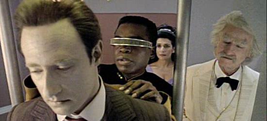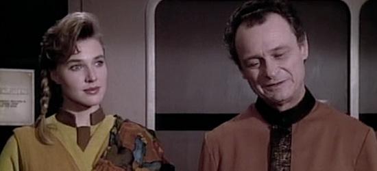 Is it conspiracy or coincidence that decades after Holbrook’s gigs, Hardin was cast as both Next Gen’s Clemens (1992) and then X-Files’ Throat (1993)? Actually, Hardin was already a known quantity in Trek casting circles; he had appeared in the first season’s "When the Bough Breaks." So, I imagine casting director Junie Lowry-Johnson and her associates naturally thought of him for Twain in "Time’s Arrow." Maybe casting Hardin was suggested by "Arrow" director Les Landau (who worked as an assistant director on "Bough") or one of the two-parter’s three writers (Joe Menosky, Michael Piller, Jeri Taylor). The truth is out there, at least regarding this specific riddle, in an interview or reference work somewhere.