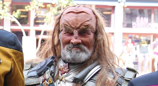 Among the characters out and about: an Orion female, a Klingon, a Ferengi, a Borg and an Andorian. Those in costume included included two Star Trek superfans/cosplayers beamed in especially for the occasion.