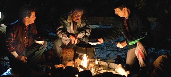 It was June 9, 1989, or 26 years ago today, that Star Trek V: The Final Frontier debuted on screens across the country. Directed by William Shatner, the movie remains as polarizing as ever -- even all these years later. In it, Sybok, an emotional Vulcan, and his followers take hostages on Nimbus III, the so-called Planet of Galactic Peace. Sybok aims to locate God, and his strategy is basic: snatch hostages on Nimbus III, reel in a starship and commandeer it to fulfill his destiny. That ship is the Enteprise, of course, and Kirk and especially Spock -- Sybok's half-brother -- harbor other ideas about Sybok's quest to breach the Great Barrier.The Final Frontier is widely regarded as the least successful TOS feature. Despite a genuinely daring and thought-provoking premise -- searching for God -- the general perception was, is and will likely forever be that the film just doesn't work. Too much around the central premise doesn't play as intended. Nothing operational on the Enterprise? Scotty bumping into things? "Row, Row, Row Your Boat" sung around a campfire? Cringe-worthy lines like "On the contrary, gravity is the foremost thing on my mind" or "Please, captain, not in front of the Klingons," didn't help, nor did lackluster visual effects.Here are some questions to ponder, lines to remember and factoids to absorb...-- First, was the search for God too big an idea for even Star Trek to tackle?