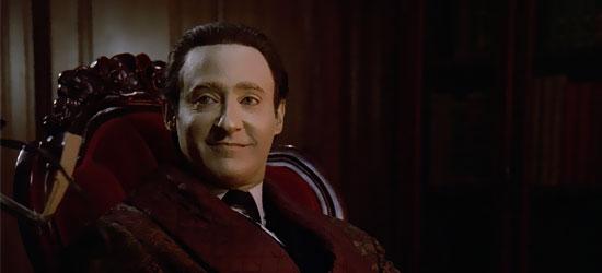 - Daniel Davis, in a conversation with StarTrek.com, discussed the development of Moriarty in “Elementary, Dear Data”: “He’s usually depicted as a real villain, as a real melodramatic, mustache-twirling villain. And in this Star Trek incarnation of it he’s someone who starts out that way, as the computer was programmed to create a villain who could match Data’s intelligence, so that solving the riddle of that episode would be more difficult for Data and Geordi would have more fun as Watson. But then the character becomes, very quickly, a sentient being and aware that he is involved in some sort of a game. He’s aware that he’s not real, but he feels real and he begins to experience real feelings and real emotions. So it was a very clever episode and it depicted Moriarty with the power of a villain, but the mind of a human being who wants to be real. It was like Pinocchio; he just wants to be a real boy. And it was interesting how they solved the dilemma and put him in a computer chip.”