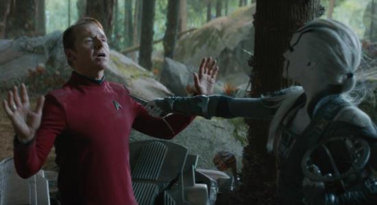 After enduring a bumpy ride to Altamid's surface in a photon torpedo, Scotty found himself alone and unaware of his surroundings. Several locals attempted to take advantage of Scotty's confused state, until Jaylah intervened and convinced the unruly gang to disperse by displaying her proficiency in hand-to-hand combat. I don't know about you, but I only employ my best martial arts moves when I am hoping to impress a new pal.