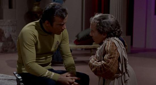 The strange group marooned on this odd little planet are several thousand years old and spend most of their time meditating and engaged in Platonic debate. They’ve lost resistance to any bacteria and are thus susceptible to deadly infection from the smallest of cuts. Hence, they need a doctor like Bones to step in and help when their leader, Parmen, becomes gravely ill. After he recovers, Parmen returns to what we assume is his usual tyrannical demeanor and insists that Bones remain on the planet and abandon his Enterprise post. Of course, Bones refuses and Parmen compels him to stay by torturing Kirk, Spock, and eventually Uhura and Nurse Chapel with his telekinetic and “psionic” abilities. The society’s only person to not possess these abilities is Alexander, a dwarf/little person who functions as a court jester-type figure.