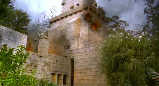 Exteriors shots for the Albino's fortress were shot at the Millard House in Pasadena. The textile block house was designed by Frank Lloyd Wright.