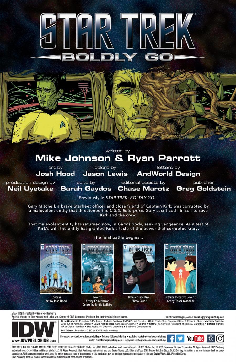 Boldly Go #18 runs 32 pages and costs $3.99. IDW is also offering a variant cover by Yoshi Yoshitani.