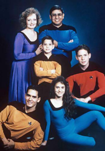 I would be surprised and a little bit puzzled at their assumption and would instantly think of all the women who were fans or contributors to the Star Trek franchise. Having been a Trekkie for as long as I can remember, I have read several books and watched documentaries about the fandom: Jeff Greenwald’s Future Perfect: How Star Trek Conquered Planet Earth and Trekkies and Trekkies 2 are obvious examples. These, and many news reports about conventions around the world, although particularly in the United States of America and England, showed numerous women taking part in the fandom. Sometimes, the whole family attended conventions, sporting their Starfleet uniform. What a great concept for a family photo (see exhibit A). And let’s not forget that the franchise might have died out completly in the 1960s had it not been for the efforts of Betty Jo Trimble, who is lovingly called "the woman who saved Star Trek."