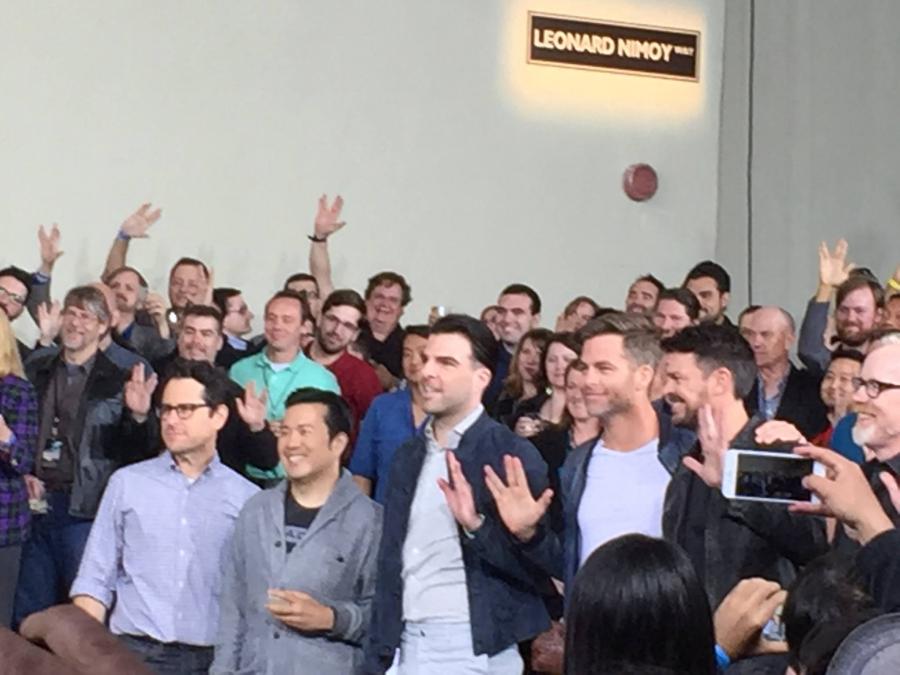 The crowd -- which included fans who won tickets in recent weeks during the Star Trek Beyond Fan Event Contest, as well as members of the media, promotional partners and movie distributors -- had a blast. Many wore costumes of their favorite characters and they cheered Lin, Abrams, Quinto, Pine and Urban as well as the Beyond footage they saw.Fans also cheered as a street on the lot was unveiled to honor Leonard Nimoy. Heightening the emotion of the moment, Nimoy's widow, Susan Bay, and one of his children, Adam Nimoy, were on hand for the unveiling. Quinto addressed everyone attending, noting that now Nimoy would guide the way for young talent trying to find their way around the Paramount lot.