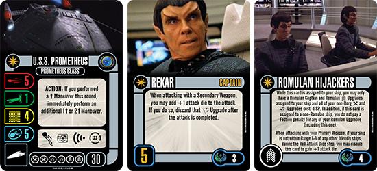 StarTrek.com has the final First Look at NECA/WizKids' upcoming Star Trek: Attack Wing's Wave 15 releases, and today we preview the Federation U.S.S. Prometheus, out this month. The Prometheus lives up to its reputation as the fastest ship in Starfleet; able to move farther than any ship released to date. Players can relive the Romulan hijacking of the experimental Prototype ship by equipping Romulan Hijackers and have them serve under Rekar as Captain. Federation loyalists will enjoy having the Doctor appear in the Captain’s role while being backed up by the EMH Mark II.
