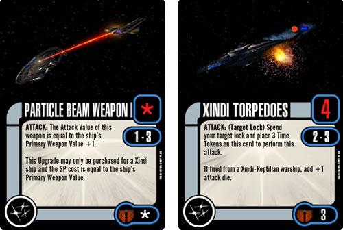 Xindi Torpedoes is just another straight-up damage-dealing weapon. This Weapon Upgrade allows you to attack with 4 die at Range 2-3. If fired from a Xindi-Reptilian warship, add +1 attack die.