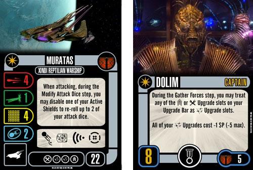 Dolim is the Xindi-Reptilian Captain in this Expansion Pack. A Skill Level 8 Captain, Dolim allows you to treat any of the Crew or Tech Upgrade slots on your Upgrade Bar as Weapon Upgrade slots during the Gather Forces step. Additionally, all of your Weapon Upgrades cost -1 SP (-5 SP max).