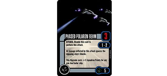 In the last review (5th Division Patrol Ship), we examined how powerful a weapon like Phased Polaron Beam can be due to its ability to ignore shields. Once again, we find the Phased Polaron Beam as a Weapon Upgrade in this Expansion Pack. While you are limited to a Range of 1 this time, you get 4 attack dice in exchange. This seems like a fair exchange for the increase in damage potential.