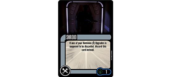 The last upgrade we will examine is Shroud. This Tech Upgrade is cheap and effective, which means you will want to have multiple copies. Instead of discarding a Dominion Crew Upgrade, you may discard your Shroud card in its place. This card combines nicely with many Dominion Crew Upgrades. It pairs especially well with Remata’Klan (2nd Division Battle Cruiser), which can add +2 to your Captain Skill and +2 to your Attack dice for all your attacks that round. Instead of discarding Remata’Klan, discard Shroud and do it all over again next turn.