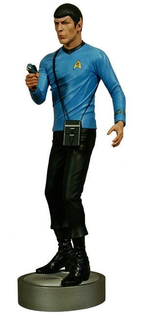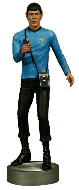 Mr. Spock is prepared for action, phaser in hand – and ready to join your collection of Star Trek collectibles. Coming soon from Hollywood Collectibles, the limited-edition Star Trek: Mr. Spock 1:4 Scale Statue will stand 19 inches tall and will also feature Spock (in the likeness of Leonard Nimoy) with his trusty tricorder and a transporter-themed base. The product – sculpted by Chris Vierra, with paint masters by Fred DiSanto – is constructed from heavyweight polystone and then painted to the finest detail.