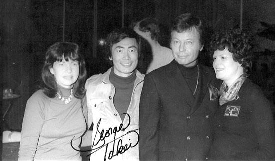 Of course, the first question some fan would ask was about how the framistan in the infirmary worked. De would get that wicked smile on his face and point out Bjo in the audience. “Ask Mrs. Trimble,” he would say, “She knows all about how these things work.” All the fans in the audience would turn to see if they could get an answer from her. She kept telling De that she knew only about as much as he did, but he cheerfully pointed out that he had at least deflected the fan question to me, not him.The oft-repeated story about De being crowded so badly by eager fans that the autograph table pushed him against a wall is only half-true. It happened at Equicon, one of our own conventions, and we were present when it happened. It was one of De’s early appearances, and the fans were indeed eager to get as close to the Enterprise doctor as they could. The table was pushed far enough to alarm De, but Equicon security went into action. They told the fans that Mr. Kelley would leave the room if people didn’t stop crowding him and wait their turn for an autograph. The fans stopped pushing, and withdrew to discuss who had been standing in line where. End of problem. But of course the story grew into a major legend.