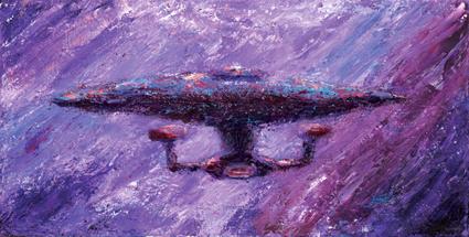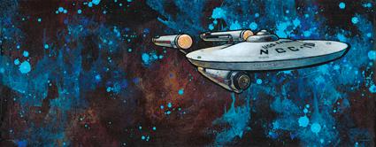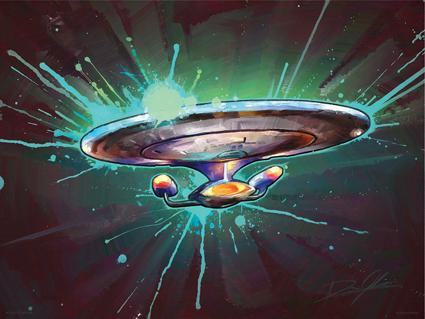 Finally, fans should check out the two new pieces by Jeff Foster. “Dash D” is a colorful 12” by 24” depiction of the Enterprise-D and “Neutral Zone,” heavy on green and blue and measuring 18” by 24,” finds the Enterprise entering the frame in pursuit of Romulan Warbirds. “Neutral Zone” and “Dash D” are both paper posters, and each costs $25.