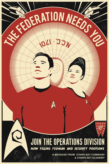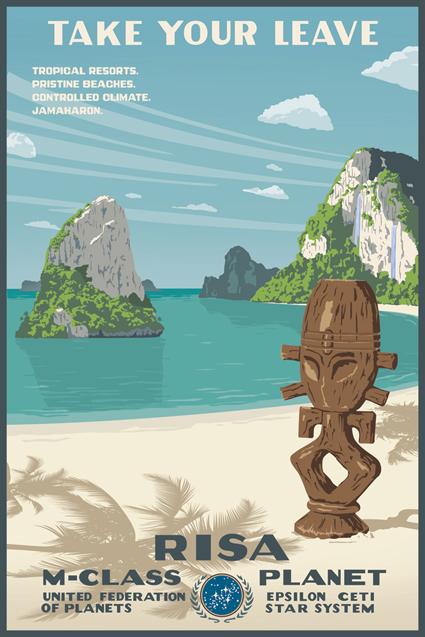 Bye Bye Robot is saying “hello” to Star Trek fans in a major way. The company just added a whopping eight posters to its Star Trek collection. Steve Thomas’ “Red Shirt Recruitment” poster announces that “The Federation Needs You” and is filling yeoman and security positions. Meanwhile, Thomas also rendered, “Escape To Risa” a visually soothing travel-style poster that beckons potential visitors to the ultimate pleasure planet. Both posters measure 16” by 24” and cost $25 each.