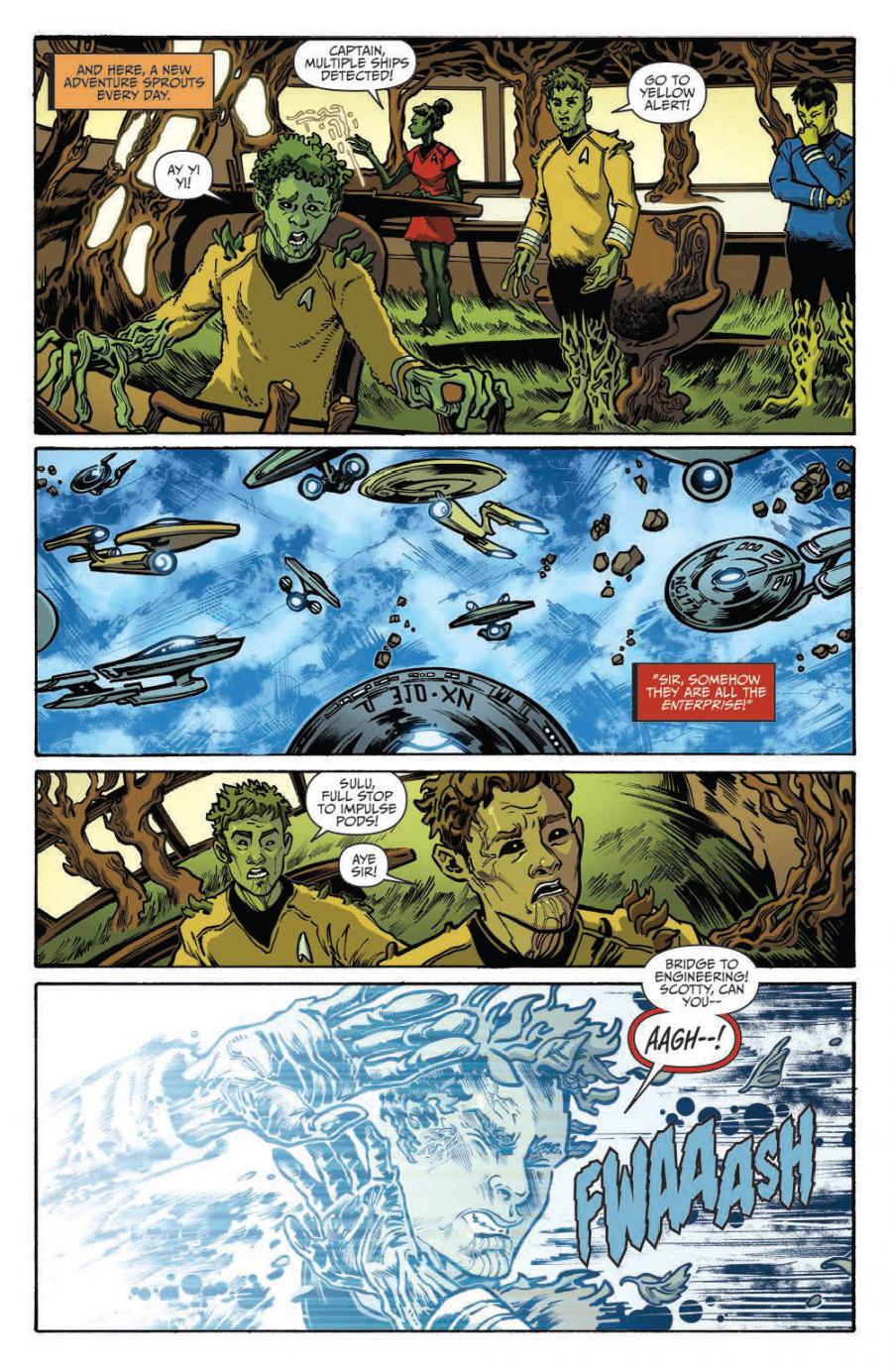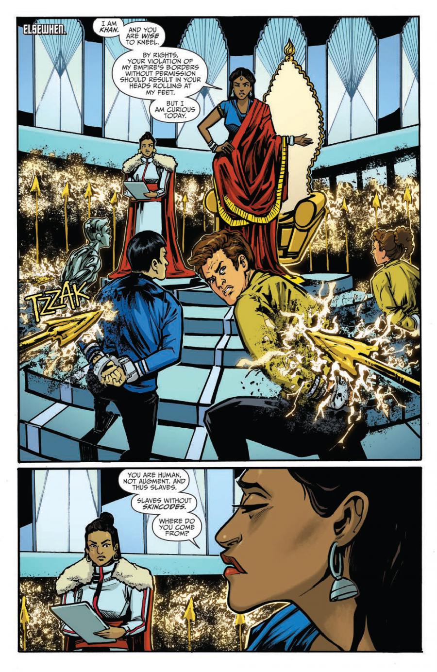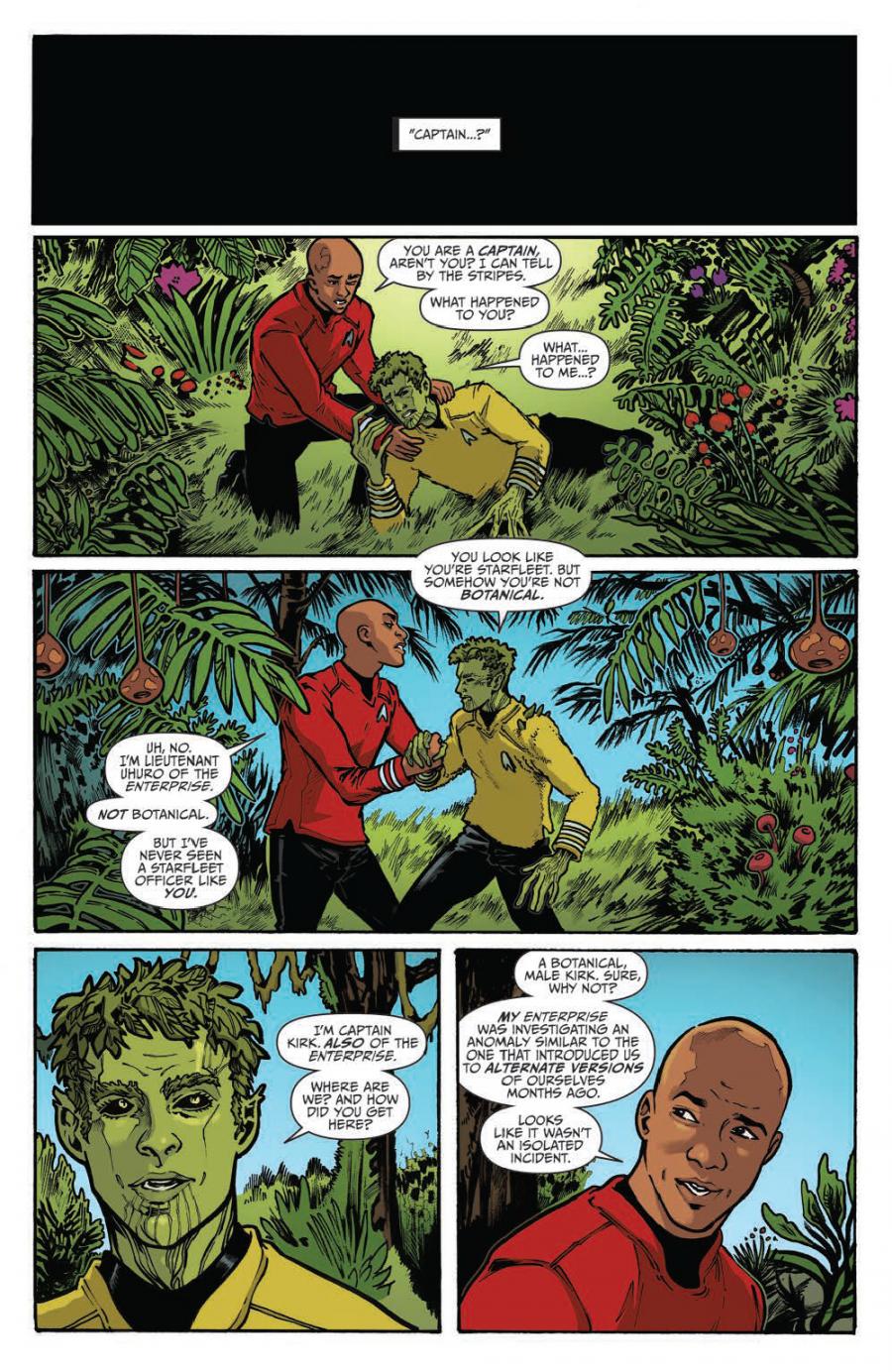 IDW Publishing’s six-part comic-book adventure Star Trek: Boldly Go will continue on Wednesday with the release of the 15th installment, “I.D.I.C., Part 3 (of 6).” Written by Mike Johnson with art by Tana Ford and a Tony Shasteen cover, the story reveals the mastermind behind the colliding realities and asks the following question: Can the multiple Kirks and their crews unite in time to save all of their universes?
