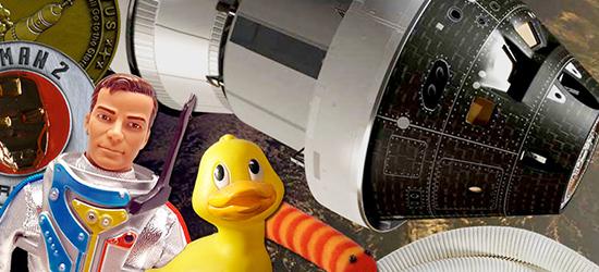 Sci-fi and sci-fact will collide again tomorrow, when the Orion -- NASA'S next-generation spacecraft -- blasts into space for a test flight. The unmanned craft will carry into space with it sci-fi collectibles/memorabilia, much of it provided by celebrities, as well as historic artifacts. So, in addition to a Marvel challenge coin (provided by Jon Favreau), Sesame Street's Slimey the Worm, one of Cookie Monster's cookies and a Tyrannosaurus Rex fossil, the payload will include William Shatner's NASA-issued Orion EFT-1 "boarding pass" and a boxed Captain Kirk action figure.