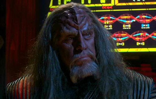 SCHUCK: I knew Leonard and he said, “There’s a part you might be right for.” Then I heard from him again, and he said, “Would you come in and audition for this Klingon ambassador. Small part, but important.” So I read it and thought, “Well, this is very Shakespearean. I like this. Big character. Wonderful language.” Then I saw the costume design and went, “Oh, this is great.” So I went in and auditioned. Here, I thought I was shoo-in, but Leonard say, “I don’t think you’re right for the part.” But I got it and that’s how I did my first Trek piece.