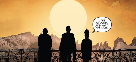 Conclude, that is, in live-action form. What you may not be aware of is that the story of the “new” Kirk, Spock and Bones is zooming right along in a top-notch comic series from IDW Publishing called Boldly Go. Its fourth issue is about to hit stores, but its first three issues are still very much available from all the usual vendors in both electronic and dead-tree form. And it's got the same high energy, upbeat vibe of Justin Lin's outstanding summer hit.