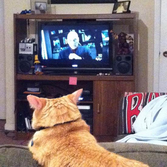 Kris Kallies -- This is my cat Spot. Yes, named after Data's cat. He responds in the episodes where Spot is a character.