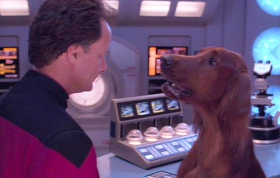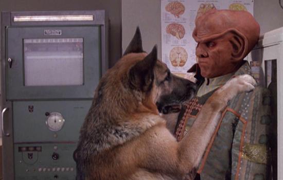 It's Take Your Dog to Work Day, and so StarTrek.com thought we'd celebrate The Dogs of Trek. Now, that's a very, very short list even with all the hundreds of hours of Star Trek films and shows. In some cases, dogs were on screen, but they played aliens, as with "The Alien Within," or were created with VFX or they were just puppies. And our favorite dog should surprise no one... it's Portho's from Enterprise. So here's to Porthos as well as the less familiar Dogs of Trek.Maura, the pooch/host in TNG's "Aquiel." Good dog. Bad dog. Very bad dog.