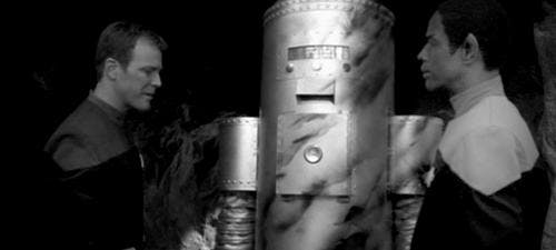 You’ve got to love it when Harry comments on how familiar the Planet X set seems to him. That, of course, is a reference to the franchise's many recycled locations and also the infamous Planet Hell stage at Paramount, which all the shows utilized to create their assorted alien worlds, often too obviously.