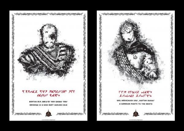 If you’re itching to get your Klingon on, look no further than Generation Gallery, which is offering a set of two Klingon pieces from its Star Trek fine art collection. There’s Worf the Warrior and Chang the Warrior, both of which are realized in black, white and red on 300gsm textured fine art paper. The copy beneath Worf reads “A warrior fights to the death” in Klingon and English, while the copy beneath Chang reads “Revenge is a dish best served cold,” also in Klingon and English.