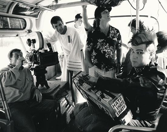 Included here is a special, rare photograph of Don Peterman (with soda can), Leonard Nimoy, and associate producer Kirk Thatcher (who had a cameo as the “Punk on Bus”) taking a quick break during filming of the famous bus scene.