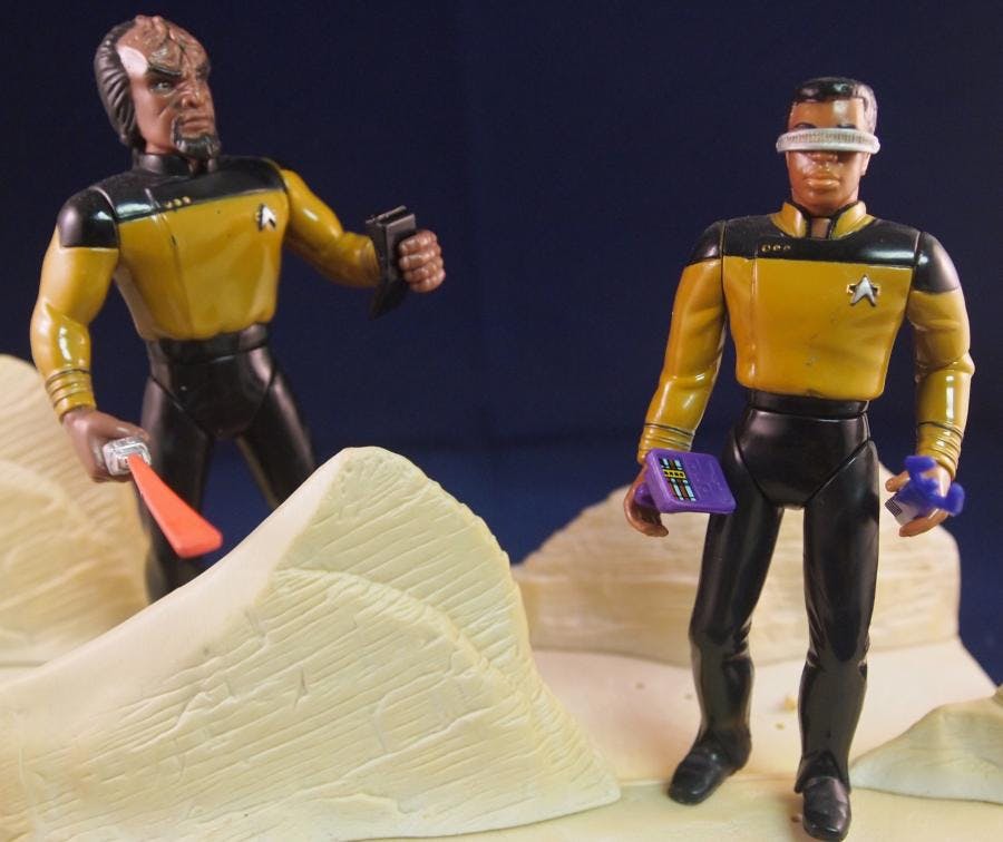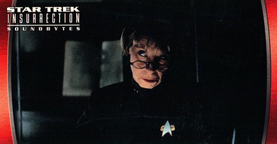 That is where Star Trek collectibles come in. Occasionally, and in the instance of Star Trek: Generations quite memorably, toys and trading cards were windows into deleted scenes. In this month’s article, we take a look at some intriguing examples.
