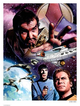 Blood Will Tell… indeed, especially if Joe Corroney has any say in it, which he does. Corroney, the talented Star Trek comic book artist, recently unveiled his first fine art prints – Undiscovered Country and Mirror, Mirror -- for Generation Gallery. Now he’s back with his first canvas piece, Blood Will Tell, a limited-edition fine-art giclee that depicts the TOS-era Kor and several Klingon Birds-of-Prey looming large and threatening the Enterprise, Kirk and Spock.