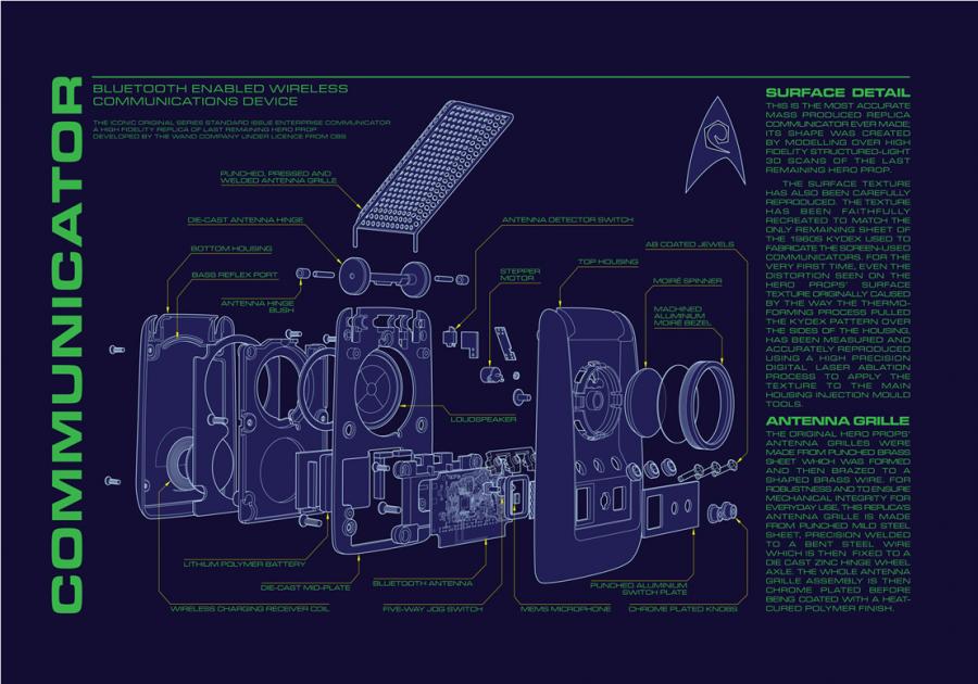 The Communicator is one of those props that just about everyone, sci-fi fan or not, has heard of. Star Trek inspired a whole generation of engineers and designers to boldly go and develop the future, but 50 years ago when Kirk first flipped open that iconic brass antenna grille and called up the Enterprise to ask Scotty to beam him up, the young viewers who would later go on to develop the mobile telephone suddenly knew that that was what they were going to do. Five decades later, Richard and I also knew that by using Bluetooth technology, we could make our Communicator a success with the fans young and old who cherished the idea of their favorite science-fiction prop made real.