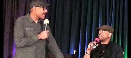 Next up, host Adam Malin conducted an in-depth interview with Jasika Nicole, "Astrid" of Fringe. Fringe, of course, was co-created by Star Trek movie writers Alex Kurtzman and Roberto Orci, two members of the J.J. Abrams brain trust, and just wrapped up its fifth and final season with a mind-blowing full-season arc that resolved the mysterious "Observers" story line. Jasika looked beautiful and was clearly delighted to be amongst so many huge Fringe fans. Next up, co-host Gary Berman hosted a fun Yes-No Trivia Competition, bringing up large groups of the audience to answer some tough Star Trek trivia questions. Some fans walked away with hundreds of dollars in prize winnings.