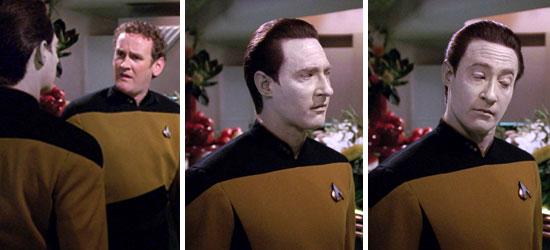 But nobody is perfect, not even an android. In our situations, we suffer more social blunders than most. What can be done when we, in our ineptitude, inconvenience others? Our ways of thinking are unusual, because the inner “algorithms” don’t take into account how situational and nuanced human behavior is. I can picture Data, in the episode “Data’s Day,” going up to Chief O’Brien and delivering the good news that Keiko has called the wedding off. Miles wants her to be happy, and if this will make her happy, what’s the problem? As well as this ineffective, straightforward logic, we both lack a sense of mood. When Picard calls Data in to “rescue” him from being alone with Lwaxana, he goes on and on discussing several mundane topics. He couldn’t tell that Lwaxana found it tedious, or that he was there to serve a very specific purpose. In another scene, Data enters a Turbolift with Riker and Counselor Troi, who immediately stop their conversation. This causes him to wonder out loud - what is wrong? Intrinsically, we’re both aware that something isn’t right, but we don't know what. We both had to quit certain habits, like correcting people or staring at them, because it made people uncomfortable. And we had to adapt, like when learning to small talk, or how to appeal to others’ pathos, as Data did in the episode “The Ensigns of Command” when he had to find a way to convince the settlers to leave their home.