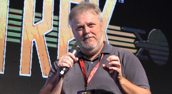 Michael Moore, who crafted thousands of Trek props across his years with the franchise, which spanned from season one of TNG to Star Trek (2009), chatted with the packed crowd at the Voyager stage about his work, collecting show- and movie-used props, and making your own as well.
