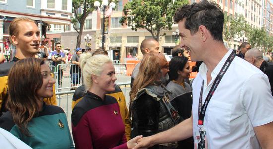 "Let's get out there!" Jason Isaacs shouted, and with that, Isaacs, Sonequa Martin-Green and much of the Star Trek: Discovery cast ventured out on to Fifth Avenue to surprise San Diego Comic-Con attendees waiting to enter the Discovery Gallery.