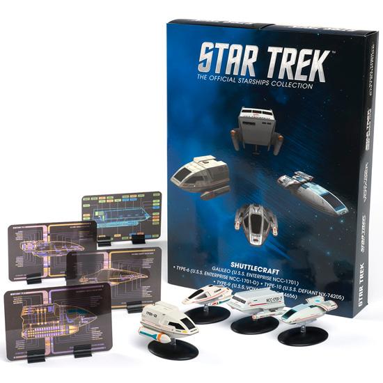 ’s own scenic art supervisor, Mike Okuda.The four shuttles in the set are drawn from different series and were created using the CG models that were used on the show, or that were supplied by VFX artist Rob Bonchune, who worked on Deep Space Nine, Voyager and Enterprise.The shuttles are: the Galileo from The Original Series, the Type 6 used on the Enterprise-D, the Type-9 shuttle which was assigned to the U.S.S. Voyager (informally known as the "speedboat shuttle") and the rare Type-10 shuttle, which was specially designed for the U.S.S. Defiant.The response to the shuttles has been very positive and StarTrek.com can exclusively announce that Eaglemoss is planning at least two more. Check back for more details.You can order the shuttles at http://bit.ly/1Pho34vThe Official Starships collection is available in selected retailers and by subscription. For more information visit www.startrek-starships.com. And keep an eye on StarTrek.com for additional information about upcoming releases and for detailed looks at each ship as it is released.