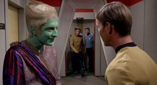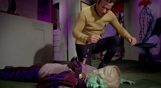 Kirk, Spock and Sulu learned that the sensor ghost was indeed a Klingon vessel and then found Petri in Elaan’s room… with a dagger in his back.