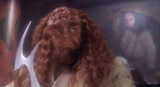 Visiting the Boreth Monastery to rediscover his faith, Worf comes face to face with what appears to be the ancient leader, back from the dead. He soon uncovers the truth: using a drop of what they thought was the Unforgettable’s blood, the created a clone and stuffed his mind with the ruler’s sayings.