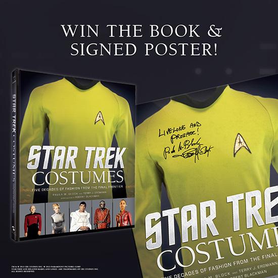 Insight Editions, publisher of Star Trek Costumes: Five Decades of Fashion from the Final Frontier, is celebrating the best time of year for costumes -- Halloween, of course -- with a giveaway. One lucky winner will receive a copy of the book, and 10 runners-up will receive a poster signed by the authors, Paula M. Block and Terry J. Erdmann.