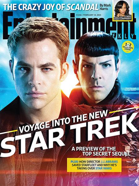 Star Trek fans who used their Star Trek Into Darkness app got a sneak peek yesterday at the cover of Entertainment Weekly’s upcoming issue, out Friday. And what’s on the cover? Chris Pine and Benedict Cumberbatch, with the tagline Voyage Into The New Star Trek – A Preview Of The Top Secret Sequel.