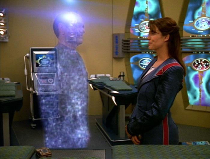 GALLAGHER: Very true. He’d done a double episode of Voyager right before me. I literally just came and visited him on the set and Robbie McNeill, who I knew only socially at the time, was going to direct “Body and Soul.” I think I’d met him through Bob (Picardo). So, Robbie was there and so was Merri Howard, and they were looking for someone to play Jaryn. I think it was Merri who came up and said, “Are you free? Are you available in the next couple of weeks?” I was, and so that just happened. And what’s funny is Robbie directed an episode of Warehouse 13 that I just did up in Toronto. But I loved working with Bob. He’s one of my best friends in the world. Our tables being next to each other, that was totally planned. We have the same representative for conventions. Bob is the one who convinced me, several years ago, to do some of these.
