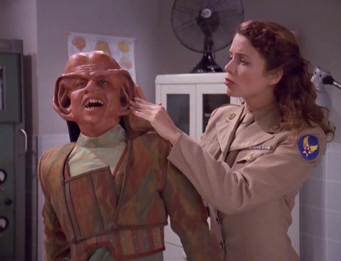 GALLAGHER: Oh my God, yes. Not to brag, but I’ve got a long resume. I’ve done six television series as a regular and recurred on a lot of other shows, and I have gotten more fan mail about that individual episode than anything else I’ve ever done, including the entire run of Millennium. Actually, I’d say “Little Green Men” and Larry Sanders are on a par with each other. But I think people loved “Little Green Men” because it was funny and different, and because of the whole mythology and mystery surrounding Roswell. When you mix Star Trek and Roswell, I think it just triggers various parts of the sci-fi brain simultaneously. And the episode was just really beautifully done, the way they shot it, the Dutch angles, all of the period stuff, the sort of It Came from Outer Space way it looked. It had all these great inside jokes. It just combined so many different and fun things about being a sci-fi fan.