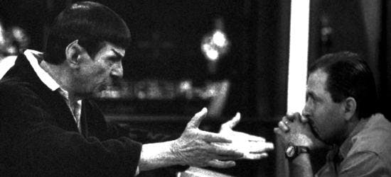 And as far as what happened toward the end of making the movie… yes. When Paramount saw the movie, when Leonard saw the movie, and everybody said, “Well, gee. Gee. Maybe killing him isn’t such a good idea.” And at that point, we got into the whole thing about “Remember” and showing his coffin on the planet, and stuff like that. All of which at the time I furiously objected to. I just thought this was so unfair to an audience of people who really care about this sh-t, and then saying, “You know, oh, it was just a dry hustle.” No, I didn’t think that was right. And in retrospect, you know, maybe I was wrong about that. At the time, I just thought that my vision of the thing was being insensitively overruled. But that’s when they made that insert, about “Remember” and put him on the planet in his torpedo.